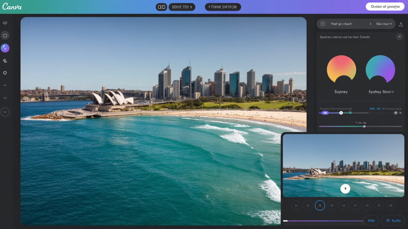 - • Prompt example: "Promo video with Sydney skyline, upbeat music, animated text"