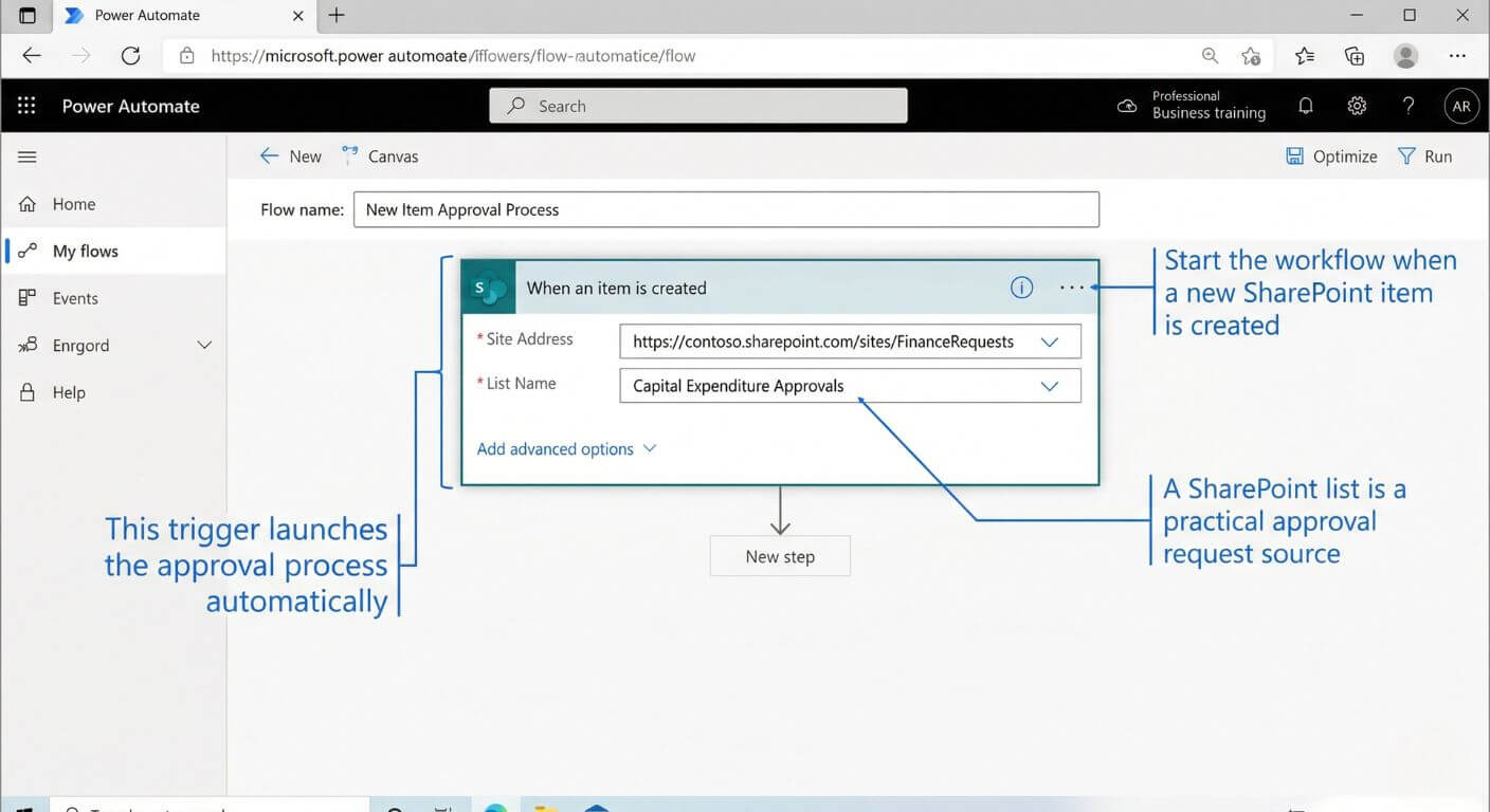 Note: menu labels and connector names can vary slightly depending on your Microsoft environment and licensing. Keep the first version of your approval flow simple, then expand it once the core process is working well.
