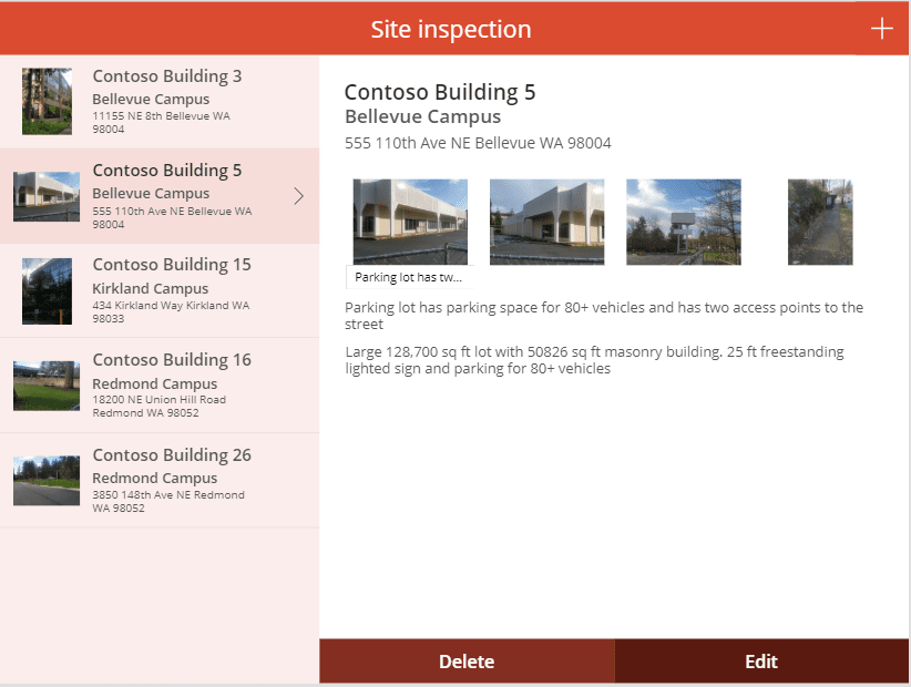 Since building a custom Power App, Paul can now enter all of the data directly into the app while at each property. All of Paul's upcoming visits are viewable on the side panel. By clicking on the current property he has begun a new form.