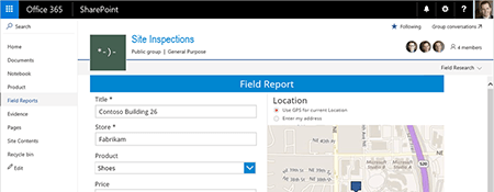 Paul takes photos directly from the app. These are uploaded to SharePoint and time-stamped with Paul's GPS location. All of the data that Paul would normally enter onto a paper-form, he can now enter directly in the app.