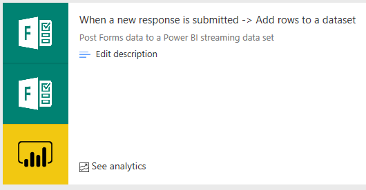 2. If you want to create a live streaming data set of your Forms responses use Flow to send the responses straight to a Power BI streaming dataset.