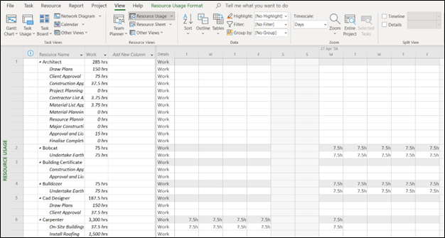 Modify any view by adding - or hiding - columns so you see the data you need. Focus on the key information, and don't get distracted by extraneous detail. You can do this by clicking the Resource Views or Task Views group, and selecting the view you prefer. If none of the views is to your liking, you can also click Gantt Chart, Calendar View, Network Diagram View, Timeline View, and More Views on the Task Views panel.