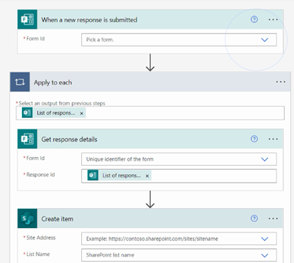 4. You just need to tell the template which form will act as the input, and the destination list to which the responses will be sent.